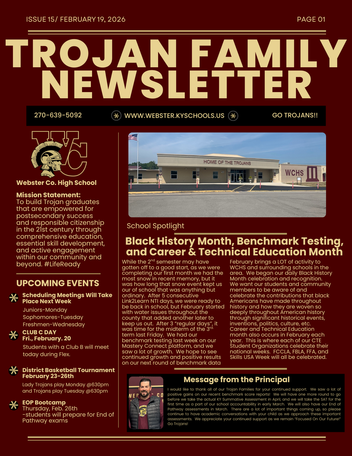 What's Happening in Webster February 20, 2026 Webster County Board Meeting Location Change The Webster County Board of Education meeting on Monday, February 23rd, will now take place in the WCHS Li...